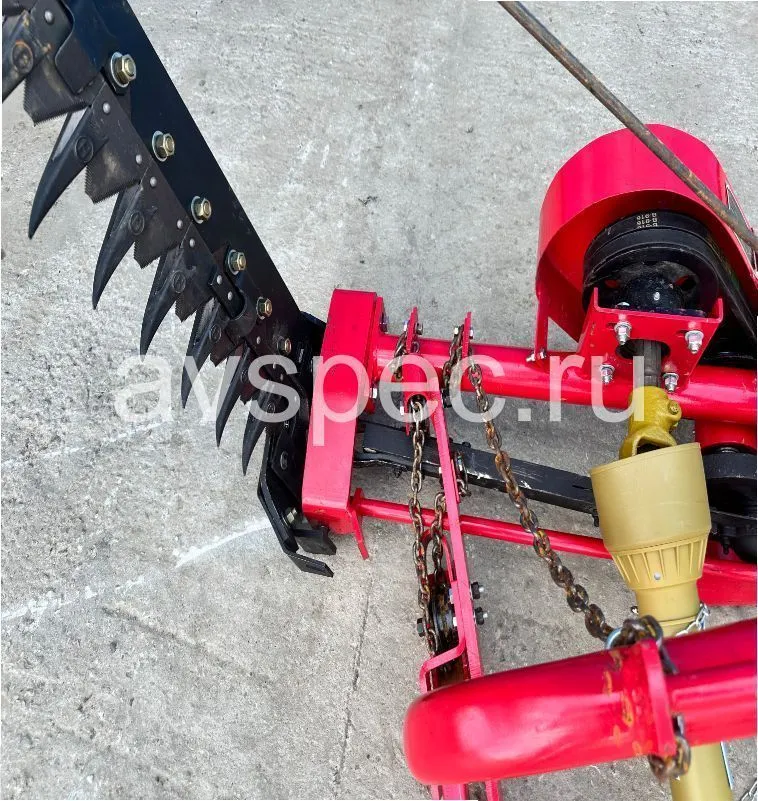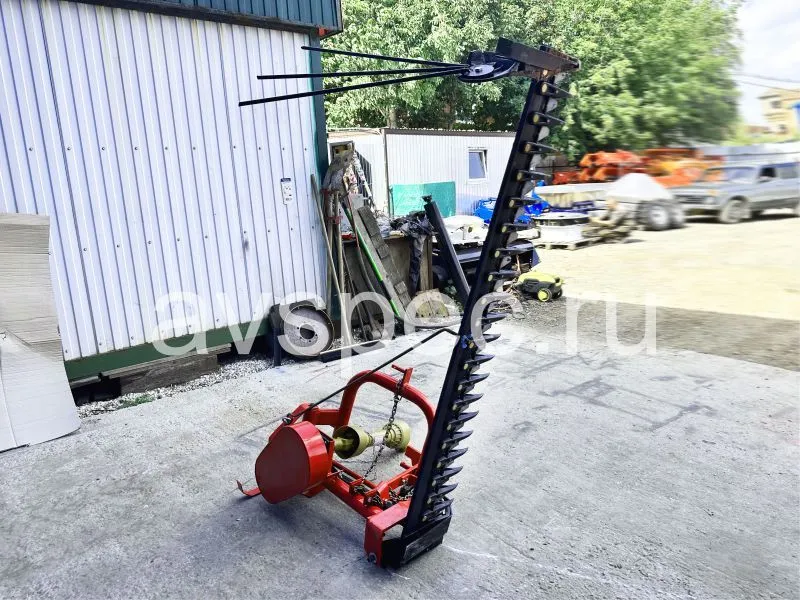 Косилка агрегатируется с колесными тракторами мощностью от 35 л.с., имеющими как задний, так и боковой вал отбора мощности. Стальные пальцы снабжены насеченными вкладышами. Режущий аппарат скользит по почве на наружном и внутреннем башмаках. Под башмаками расположены стальные полозки для установки режущего аппарата на требуемую высоту среза и для подъема его при работе на комковатой или каменистой почве. К наружному башмаку шарнирно прикреплена отводная доска, отгребающая срезанную траву в левую сторону. Режущий аппарат присоединен к раме косилки тяговой штангой, которая позволяет наклонять пальцевой брус в перед или назад. С помощью гидравлического цилиндра можно производить подъем или опускание режущего аппарата в момент необходимости, так же цилиндр удерживает режущий аппарат в рабочем положении. Режущий аппарат приводится в действие карданной передачей от ВОМа трактора при помощи шкива-эксцентрика и клиноременной передачи и вала с ведущим шкивом.
